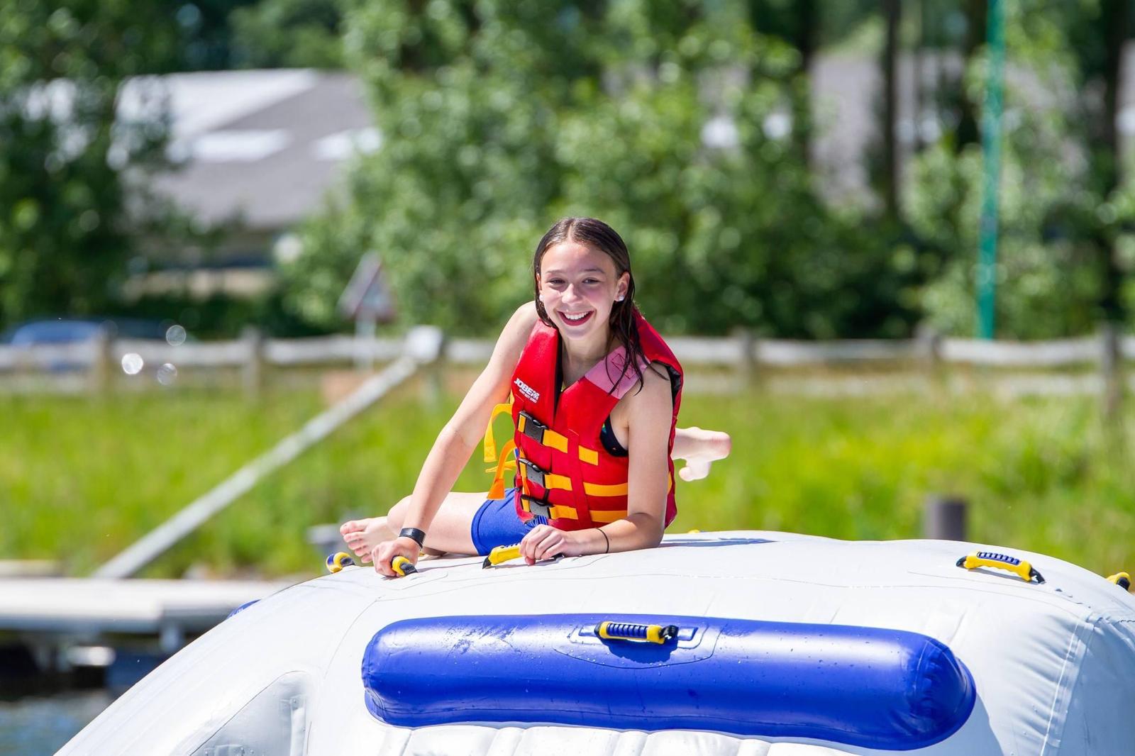 L’Aquaparc est un parcours de structures gonflables flottantes, accessible dès 6 ans pour les enfants sachant nager.